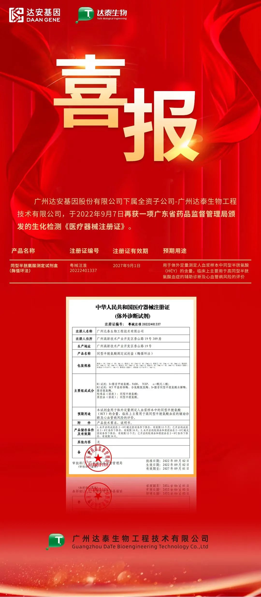 喜讯 | 金年会诚信至上基因下属全资子公司——达泰生物一项产品获批